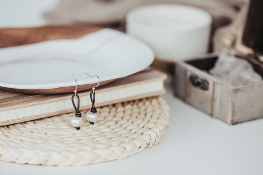 Pearl Earrings, Leather and White or BlackPearl Casual earrings