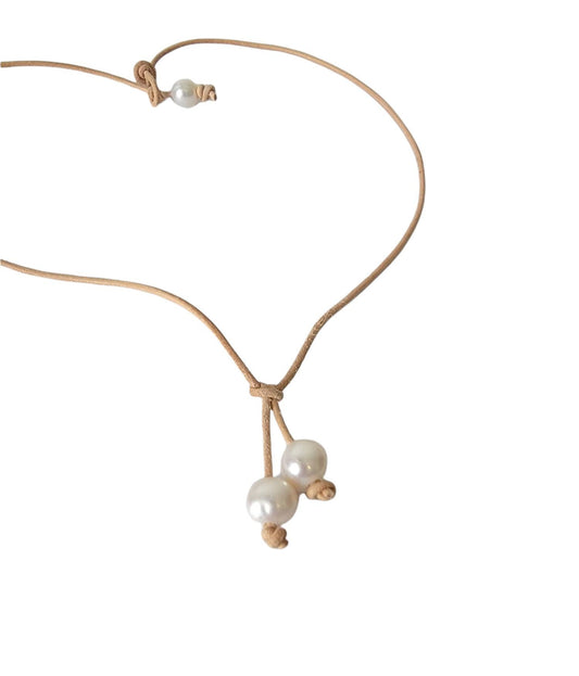 Coastal Pearl Knotted Leather necklace