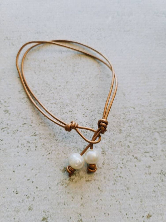 Knotted Leather Freshwater Pearl Bracelet - Coastal Grandmother Style