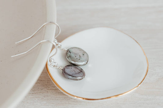 Coin shaped pearl earrings,