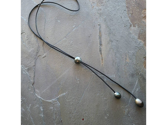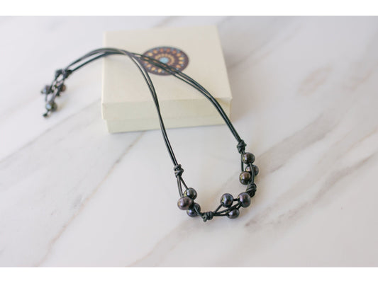 Black Pearl double strand Leather Y necklace