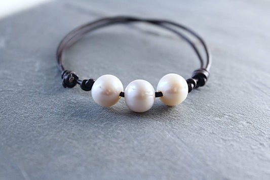 Freshwater Pearl Leather Bracelet, 3rd Anniversary Gift