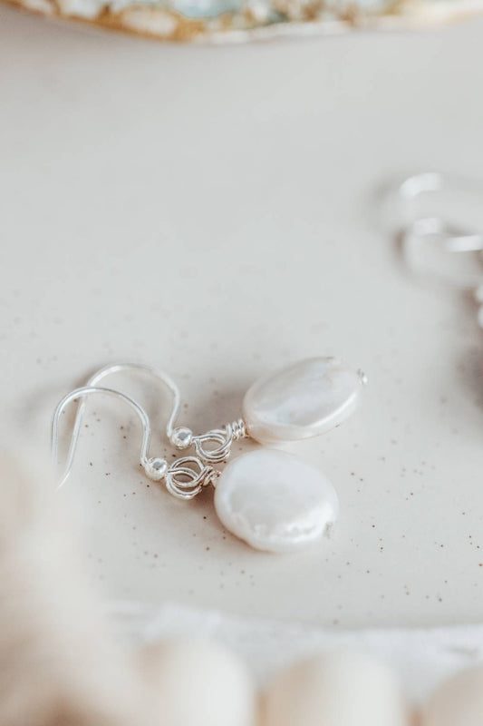 White Pearl Drop Earrings: Sterling Silver Bridal Jewelry