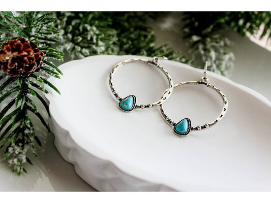 Silver Feather Turquoise nugget Dangle Earrings, Southwest style earring,