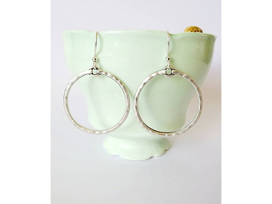 Rustic Genuine Leather hammered metal Hoop Earrings