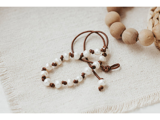 Knotted Leather Freshwater Pearl Bracelet - Coastal Grandmother Style