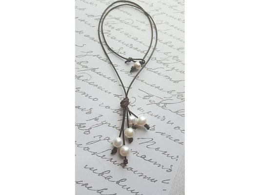 Convertible Leather Pearl Necklace, Adjustable Lariat, Bohemian Jewelry