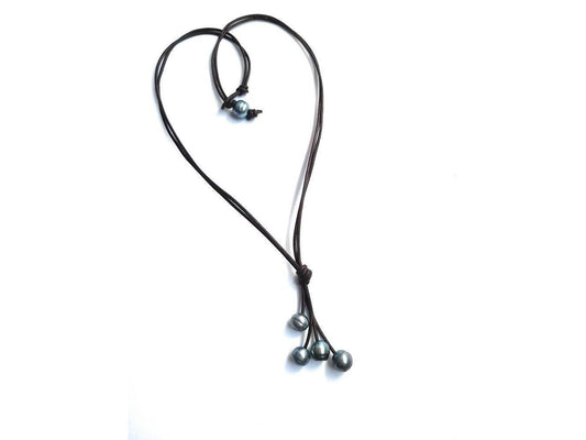 Tahitian Pearl Suede Leather Necklace: Boho Lariat Style