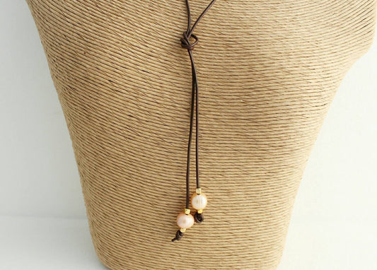 Bohemian Leather Pearl Drop Necklace: Beach Jewelry
