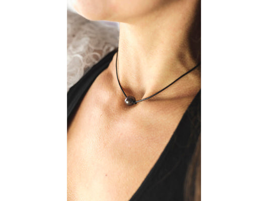 Single Pearl Leather Necklace, Floating Pearl Choker, Unisex Jewelry Gift