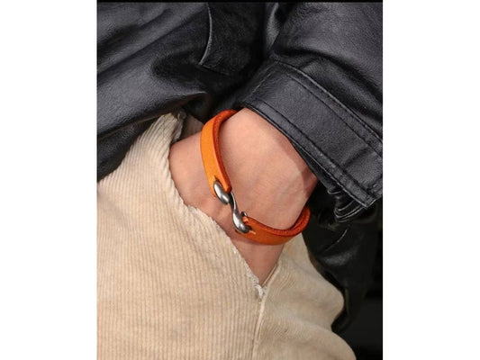 Half clasp leather bracelet, 3rd anniversary gift